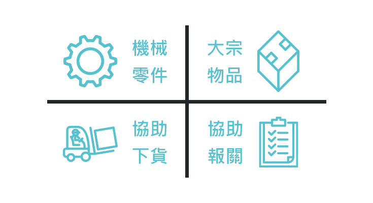 各貨運公司可能有不同限制,但基本上不限種類,機械零件、大宗物品均可運送,也可協助下貨、報關…等,只有價格會根據物品的不同而有變化。